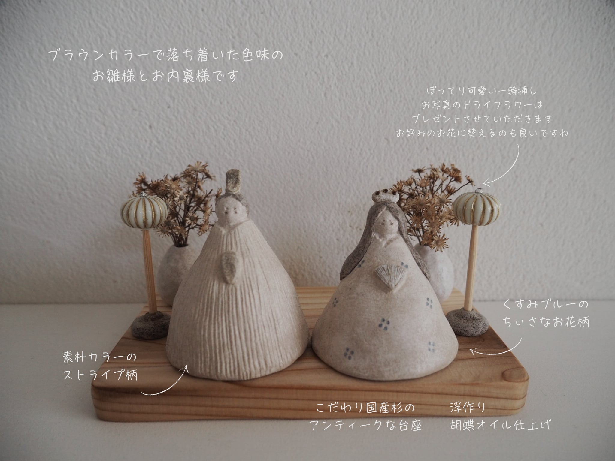 *雛人形専用の箱、ドライフラワーをお付けいたします。